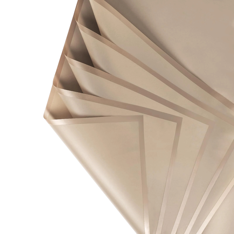 Dzięki swojej wysokiej jakości i designerskiemu wykonaniu ten papier do pakowania ze złotymi brzegami jest ulubionym wyborem zarówno wśród profesjonalnych florystów, jak i osób, które lubią tworzyć samodzielnie. Wodoodporna obróbka zapewnia, że papier pozostaje mocny i elegancki nawet w kontakcie z wilgocią. Złote wykończenie tworzy delikatny, ale efektowny kontrast, który wygląda wyrafinowanie i ponadczasowo.