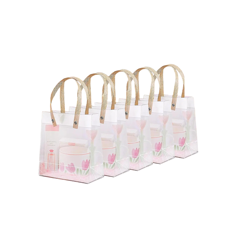Torebki prezentowe z wytrzymałego materiału PVC łączą elegancję, funkcjonalność i trwałość w jednym. Przezroczyste ścianki umożliwiają oryginalną prezentację prezentów, podczas gdy wytrzymałe uchwyty zapewniają bezpieczne noszenie. Dzięki wodoodpornej konstrukcji torby pozostaną nienaruszone nawet w deszczową pogodę lub podczas transportu. Ten model jest idealnym wyborem dla wszystkich, którzy szukają stylowego, praktycznego i wielokrotnego użytku rozwiązania do pakowania prezentów.