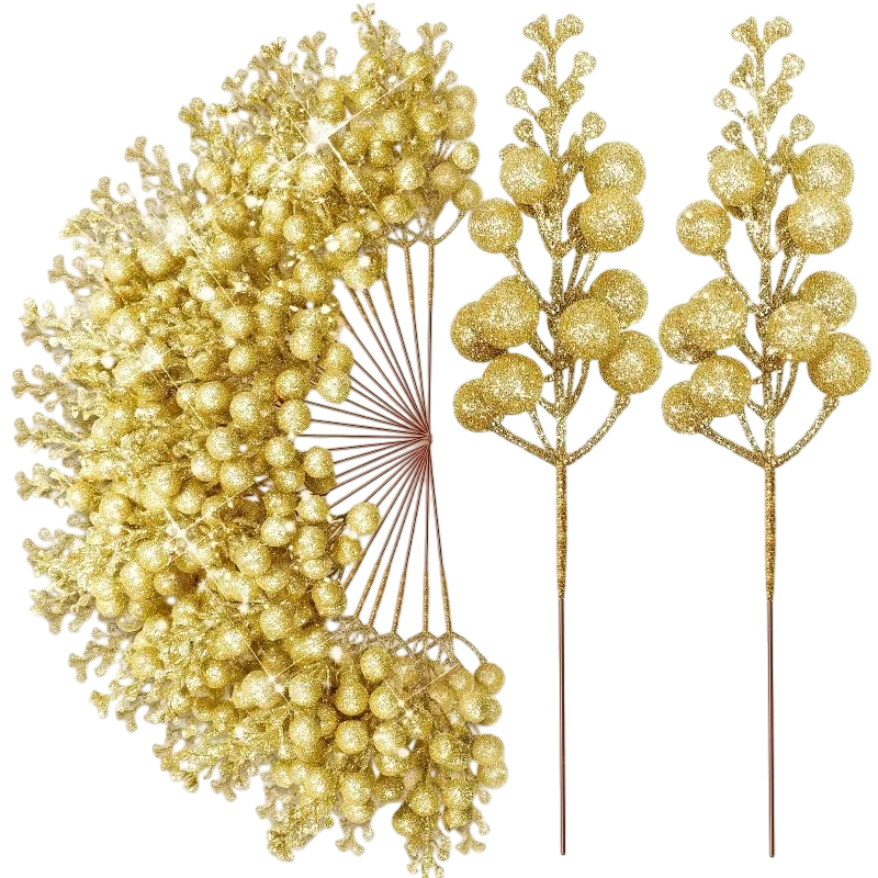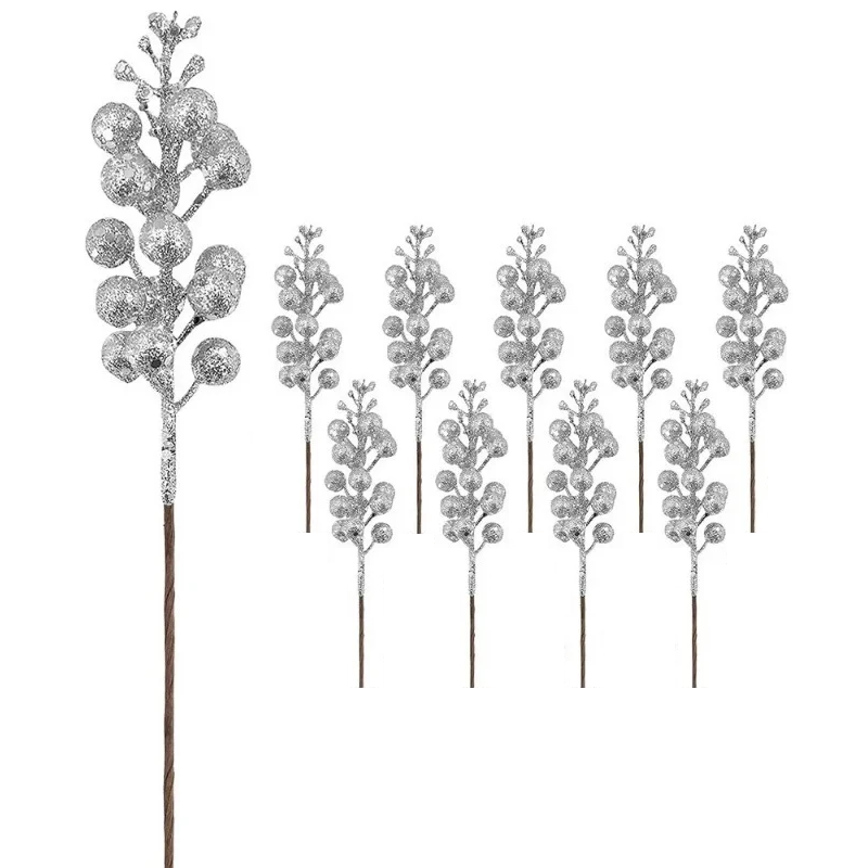 - 10 sztuk błyszczących sztucznych gałązek jagodowych do dekoracji świątecznych