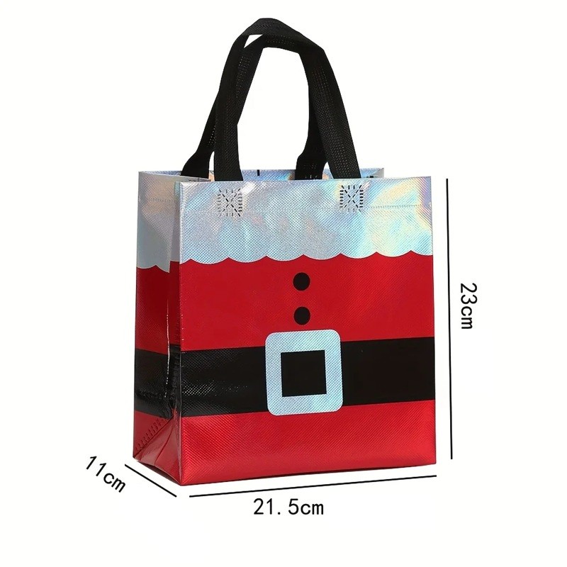 10 sztuk Torebek prezentowych na Boże Narodzenie 23 x 21,5 x 11 cm Czerwone torby do pakowania z czarnym paskiem, guzikami i srebrnym wykończeniem do świątecznego pakowania prezentów
