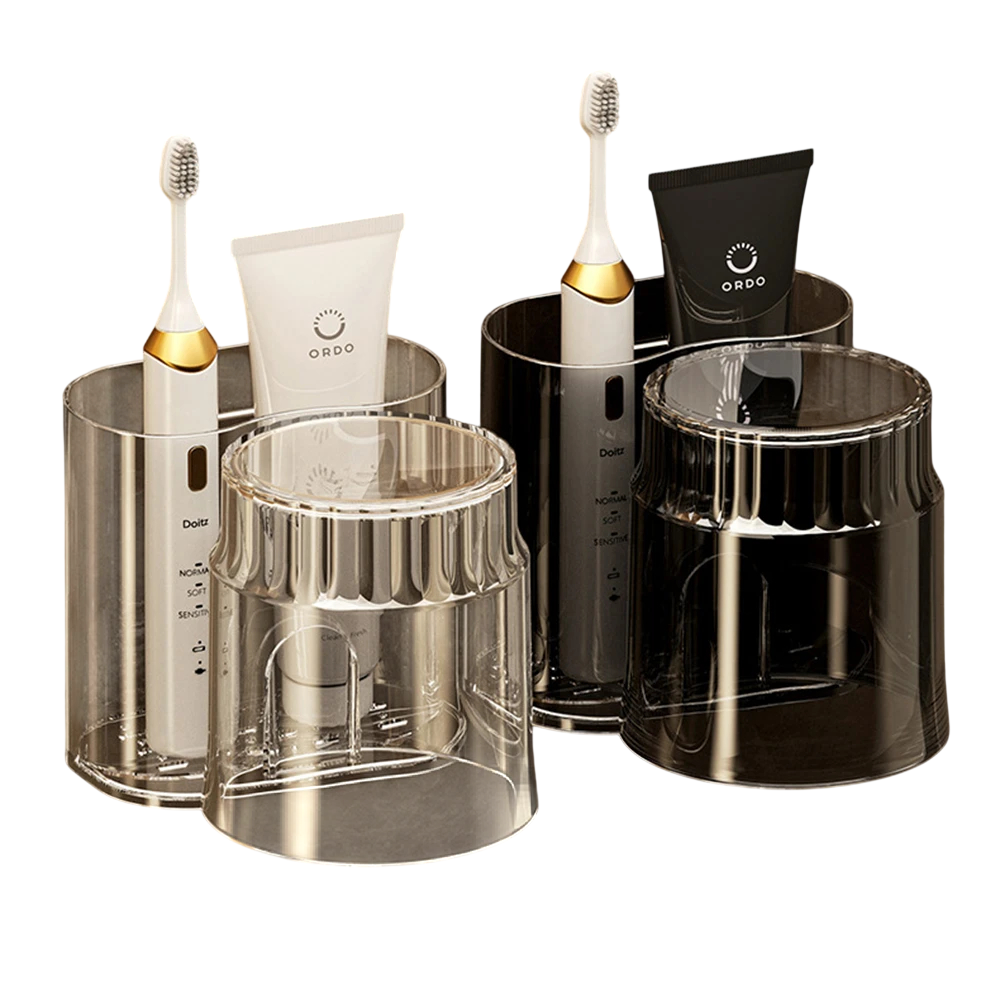 W skład uchwytu wchodzi również praktyczny kubek na płyn do płukania ust, który można łatwo wyjąć i użyć.