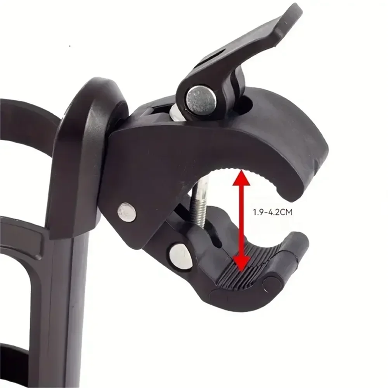 Uniwersalny uchwyt do wózka na napój i telefon z obrotowym stawem 360°, łatwą instalacją i stabilnym mocowaniem bez uszkadzania ramy. Pełny opis