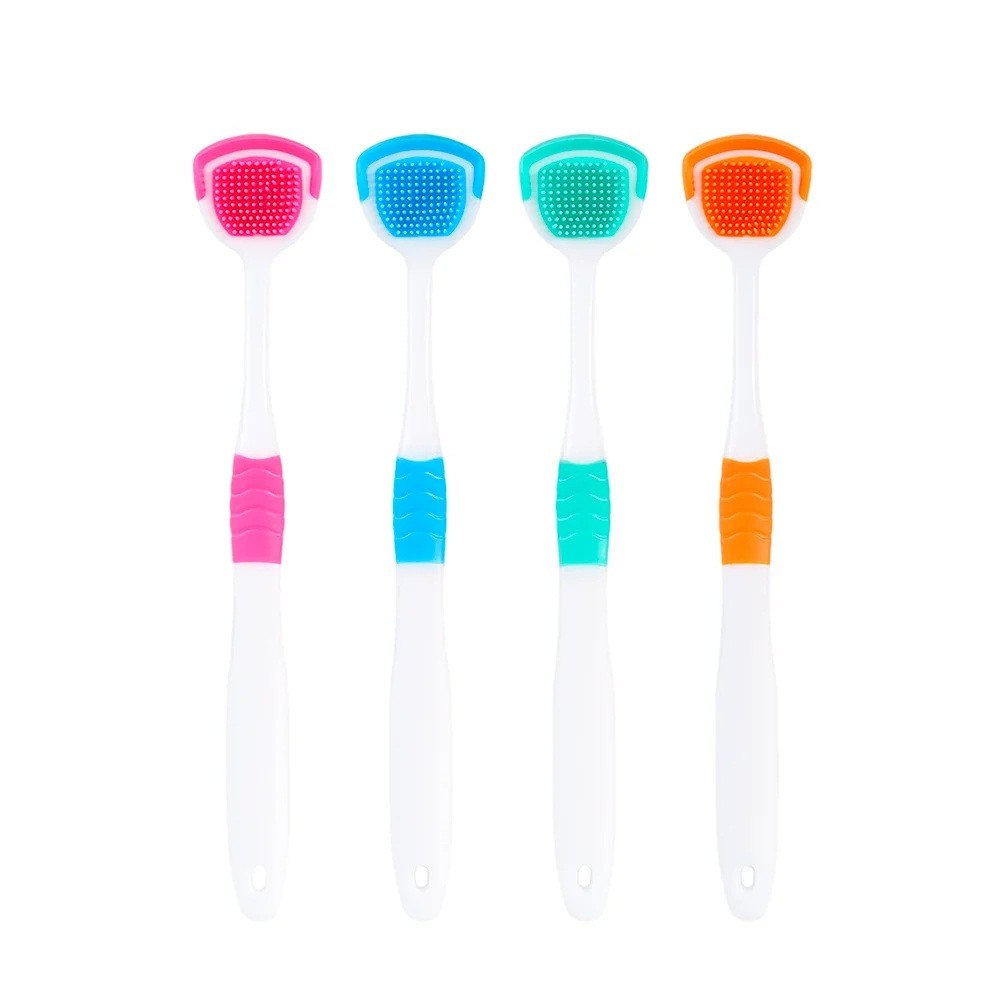 Zestaw 4 silikonowych dwustronnych szkrabek do języka 2w1 z małymi i dużymi wypustkami. Pomaga usunąć nalot z języka i wspiera świeży oddech. Pełny opis