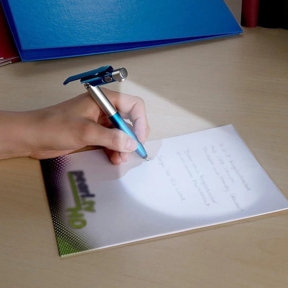 • 4w1 funkcja: Pióro z możliwością użycia jako dotykowy stylus, uchwyt na telefon, światło LED i zwykłe pióro do pisania