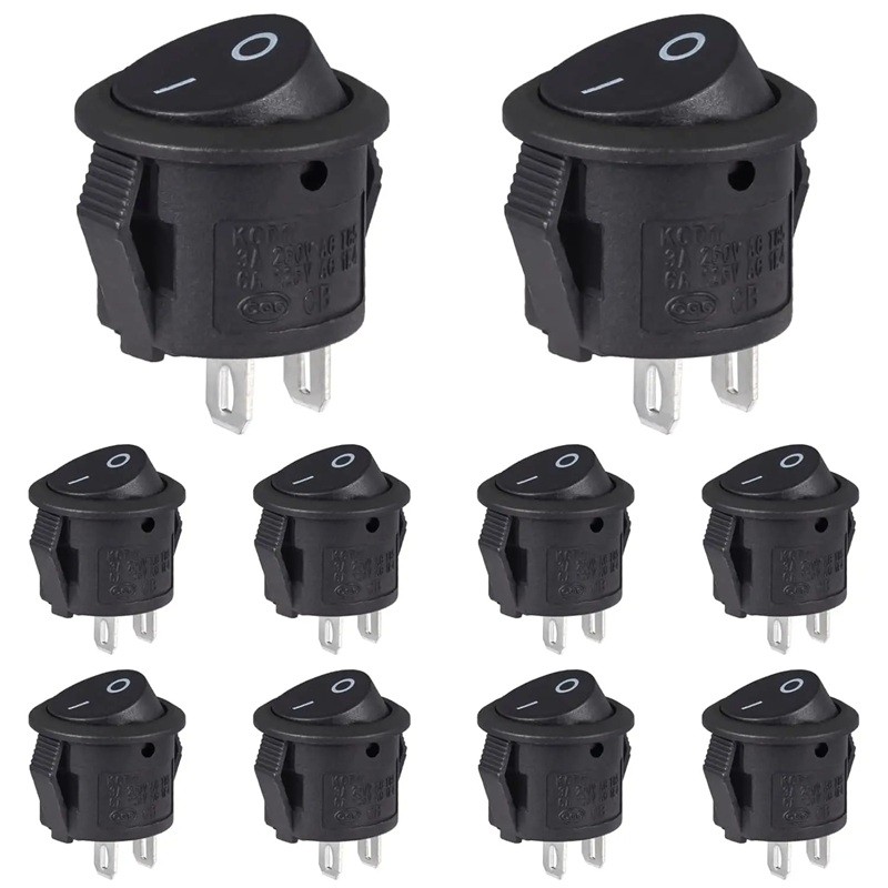 5 sztuk Czarny przełącznik kołyskowy 3A 250V AC / 6A 125V, otwór instalacyjny około 15 mm do podłączenia elektrycznego
