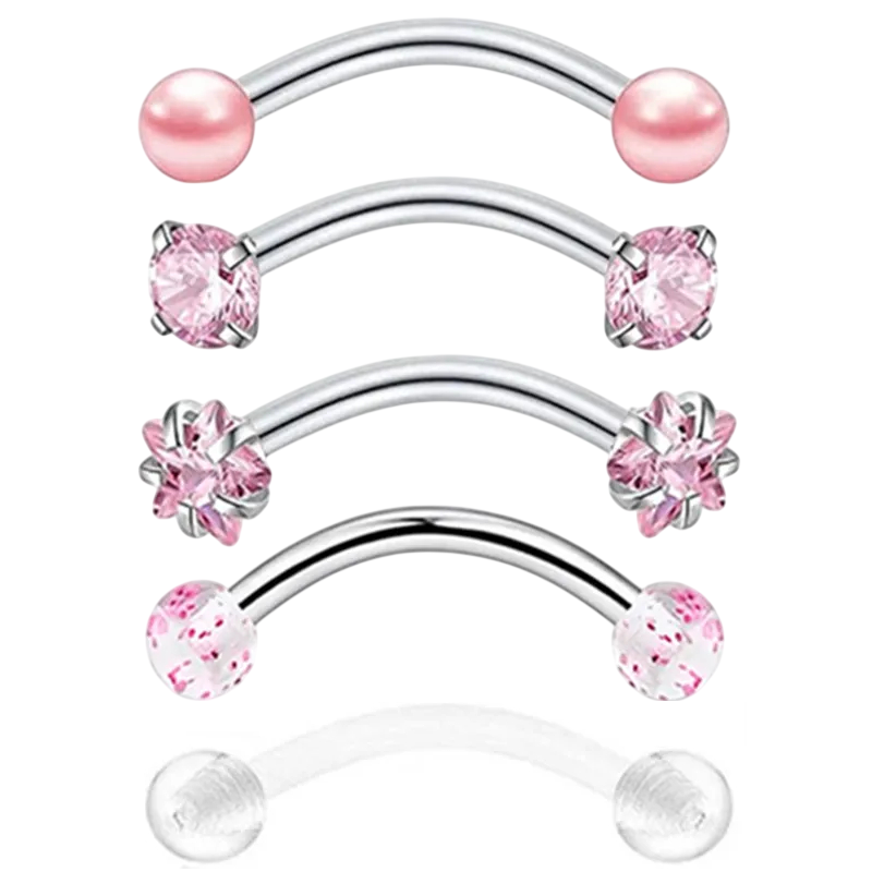 Taki zestaw piercingów do brwi jest przeznaczony dla klientów, którzy szukają delikatnego elementu dekoracyjnego o dokładnie zdefiniowanych parametrach. Zawiera 5 sztuk łukowych piercingów, które mają jednolite wykonanie i łatwo można je ze sobą zmieniać. Wymiary 1,2 × 8 × 3 mm odpowiadają standardowi dla piercingów do brwi i są odpowiednie dla większości nosicieli. Użyta stal nierdzewna zapewnia wytrzymałość, trwałość kształtu oraz długotrwały wygląd. Kwiatowy detal dodaje biżuterii delikatny akcent ozdobny bez zakłócającego efektu.