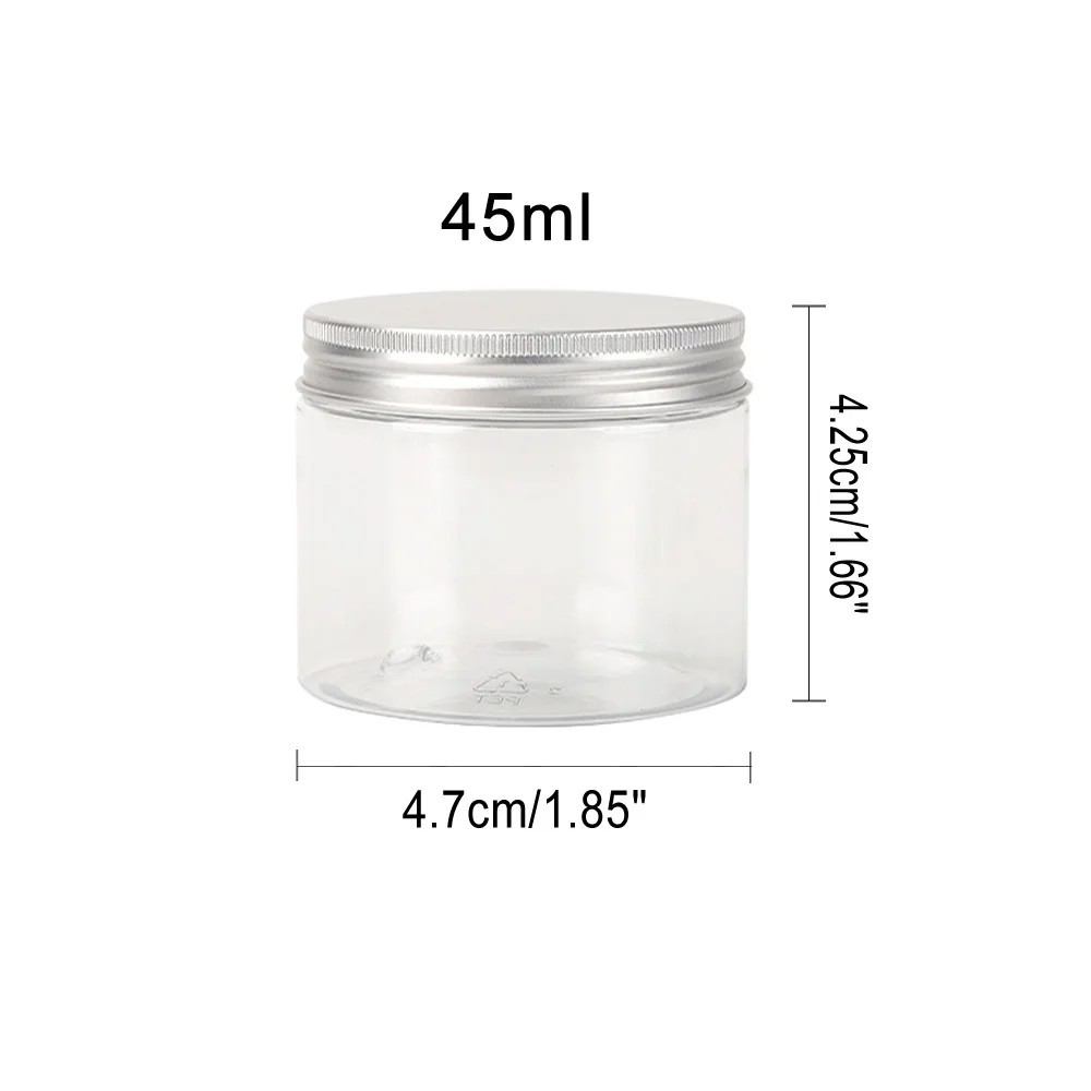 5 sztuk plastikowa kosmetyczna pojemnik z aluminiową zakrętką 45 ml 47 × 42 mm przezroczysty słoik na krem balsam maść kosmetyczne opakowanie