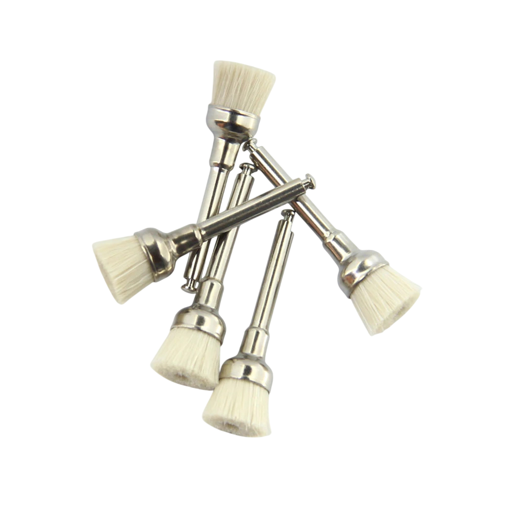 5 sztuk Szczoteczki do polerowania zębów płaskie z koziej sierści do mikromotoru Miękka szczoteczka do polerowania zębów naturalnych i ceramicznych