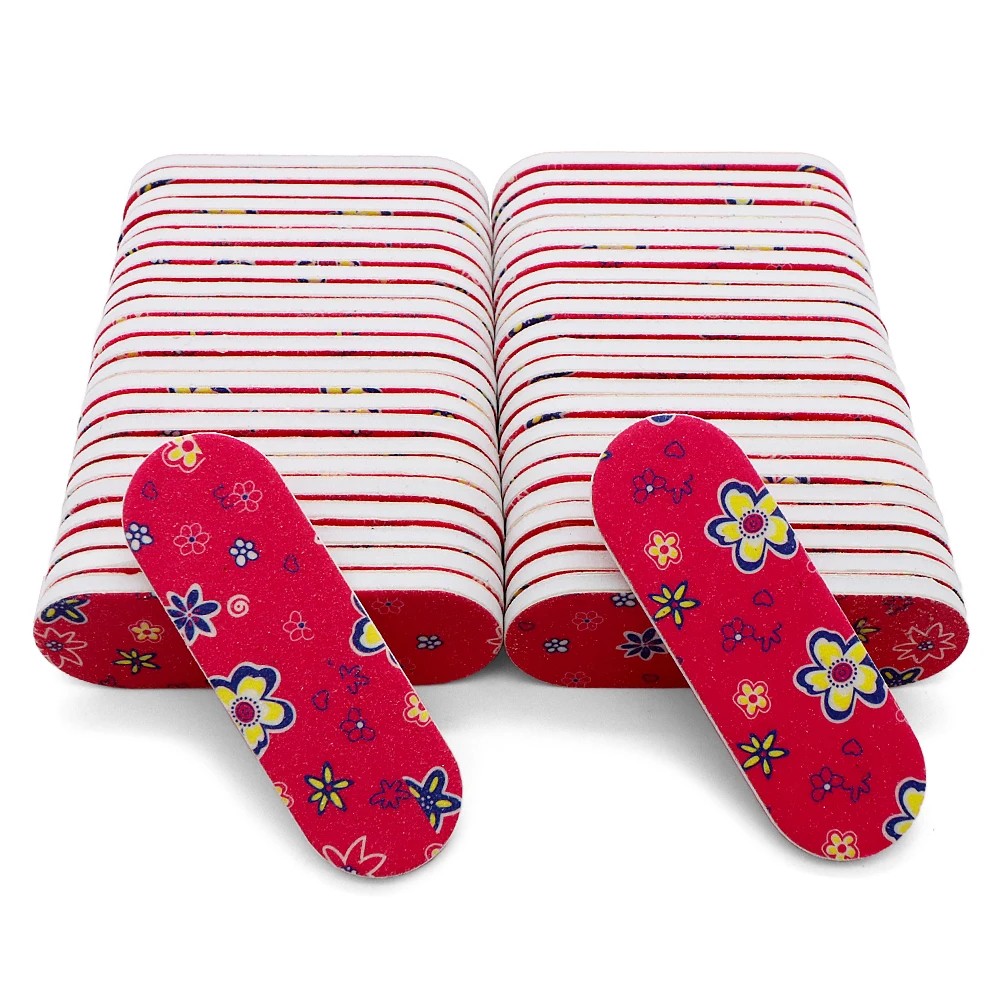 50 szt. Pilnik do paznokci 6 x 1,9 cm Czerwony kwiatowy motyw Papier ścierny Gąbka EVA Mini jednorazowy pilnik Manicure pedicure