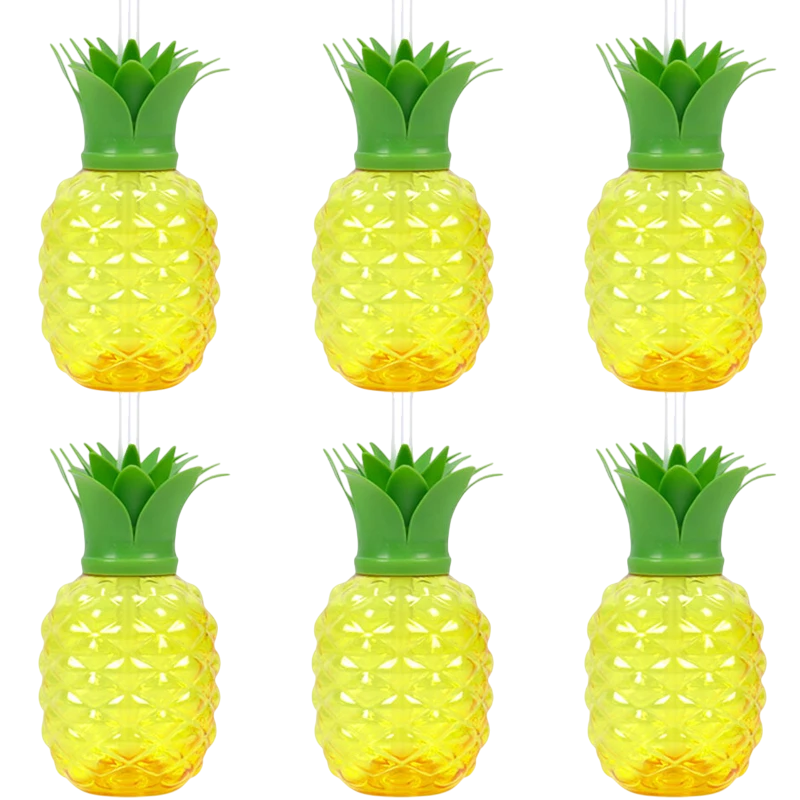 6 sztuk Hawajskich letnich kubków ananasowych do picia Plastikowe kubki w kształcie ananasa na sok Ślub Urodziny Impreza Plażowa Dekoracja Basenowa