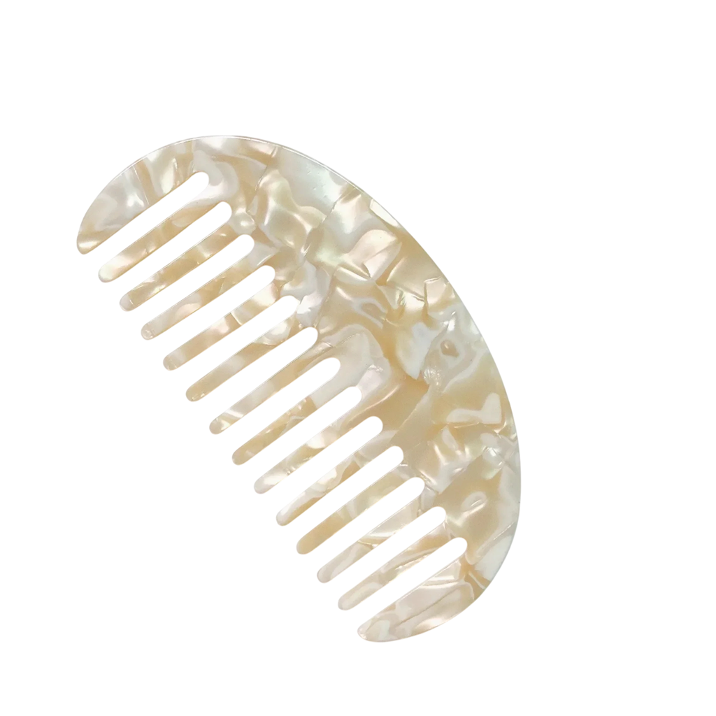 Praktyczny grzebień fryzjerski w kształcie półksiężyca został zaprojektowany do wygodnego i delikatnego rozczesywania włosów bez nieprzyjemnego ciągnięcia. Dzięki ergonomicznemu, zaokrąglonemu kształtowi doskonale leży w dłoni i umożliwia łatwą manipulację podczas codziennej stylizacji fryzury. Materiał z wysokiej jakości acetatu jest trwały, gładki i delikatny dla włosów oraz skóry głowy. Grzebień jest odpowiedni do użytku domowego oraz profesjonalnych salonów fryzjerskich. Dzięki kompaktowej konstrukcji doskonale nadaje się również jako dodatek podróżny.