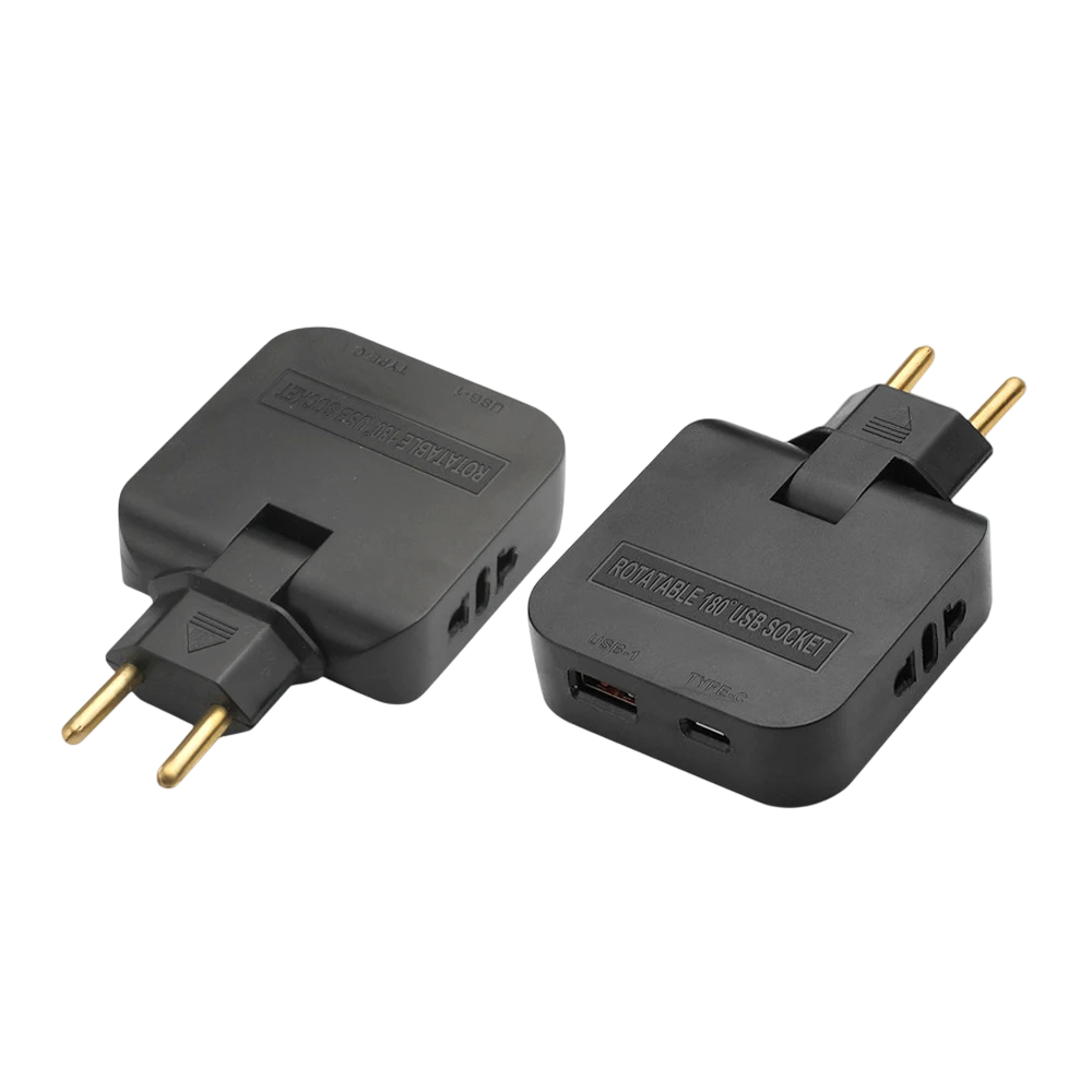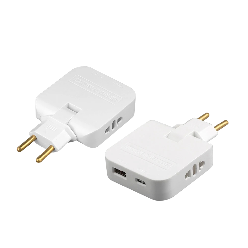 Urządzenie obsługuje maksymalną moc do 2500W (250V, 10A), co czyni je niezawodnym wyborem dla większości standardowych urządzeń i elektroniki. Dzięki obrotowej wtyczce o 180° można używać adaptera także w miejscach o ograniczonej przestrzeni. Jest kompaktowy, lekki i łatwy do przenoszenia, co czyni go idealnym dodatkiem w podróży oraz do biura.