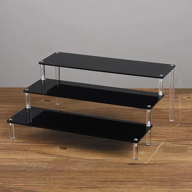 Akrylowy stojak 3 poziomy 30 × 27,5 × 15 × 10 cm czarny organizer na figurki perfumy biżuterię półki do wystawiania przedmiotów kolekcjonerskich