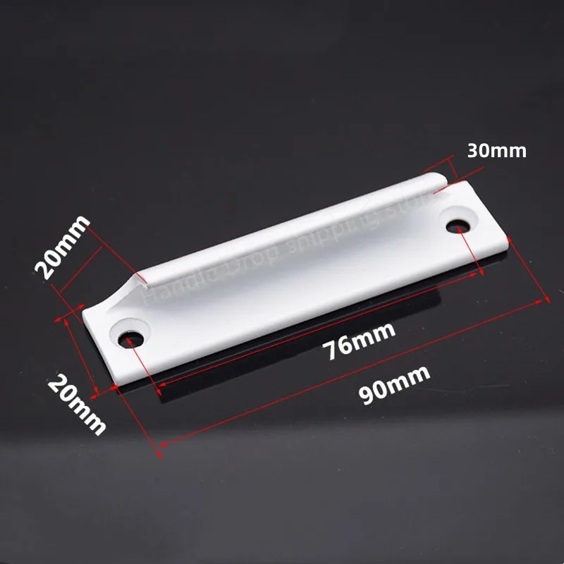 Wymiary uchwytu to 90 mm całkowita długość, długość obudowy około 76 mm, szerokość około 30 mm i wysokość około 20 mm. Te wymiary zapewniają wystarczająco dużo miejsca na wygodne chwytanie, nie sprawiając, że uchwyt wydaje się masywny. Uniwersalny rozmiar umożliwia zastosowanie w różnych typach ram drzwiowych i okiennych. Uchwyt można również wykorzystać do drzwiczek meblowych, paneli przesuwnych lub osłon technicznych.
