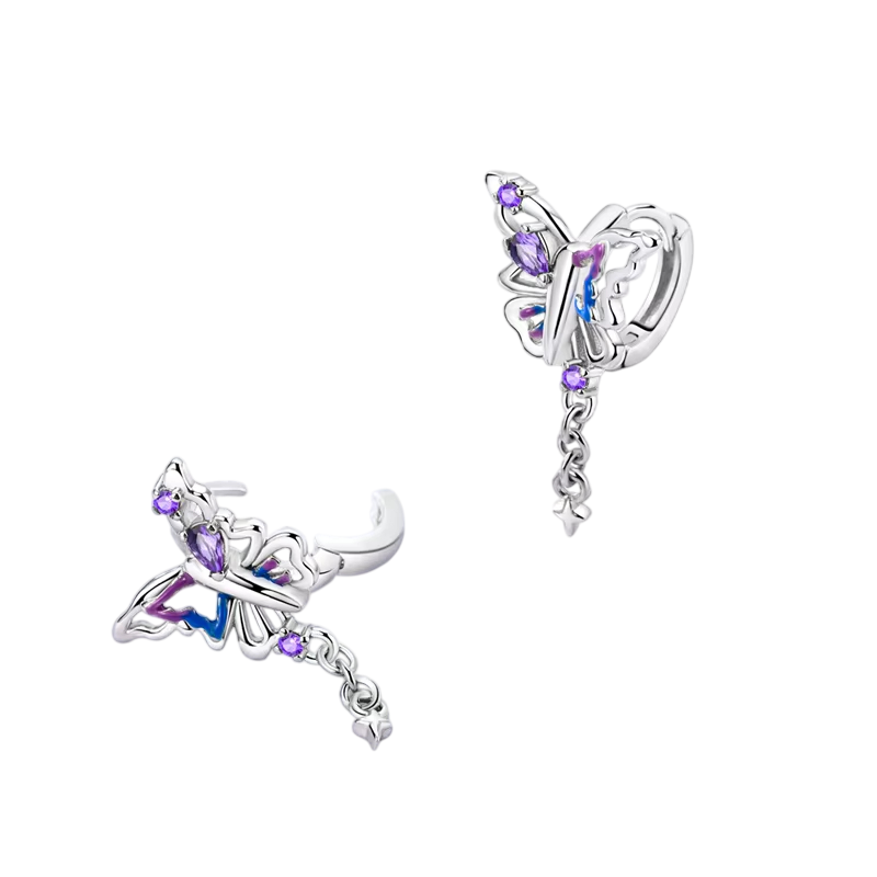 Asymetryczne motylki kolczyki z 925 srebra sterlingowego dla kobiet, symbolizujące transformację, odrodzenie i wolność. Delikatny design do codziennego noszenia. Pełny opis