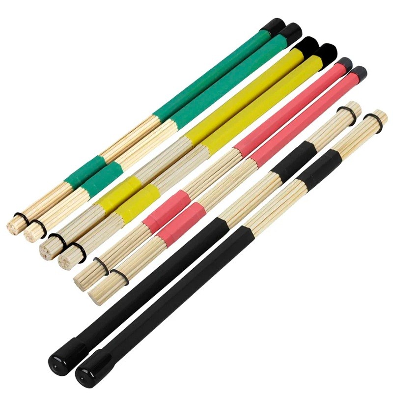 1 × Para bambusowych szczotek do bębnów (40 cm, różne kolory)