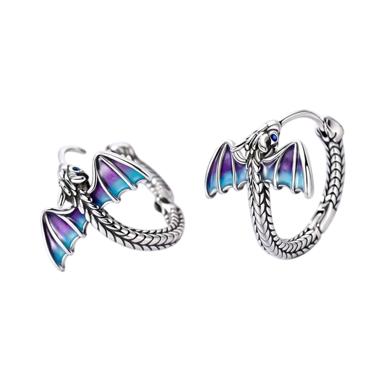Te baśniowe smocze kolczyki, wykonane z wysokiej jakości 925 srebra sterlingowego, są pięknym i symbolicznym dodatkiem dla każdej kobiety. Motyw smoka symbolizuje siłę, ochronę i tajemnicę, co czyni te kolczyki idealnymi dla kobiet, które szukają biżuterii łączącej mistykę i osobistą siłę. Delikatny design i precyzyjne wykonanie sprawiają, że te kolczyki są idealne do codziennego noszenia, ale także na szczególne okazje, kiedy chcesz wyrazić swoją wewnętrzną siłę i determinację.