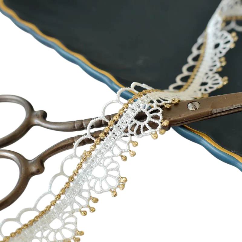 Dzięki uniwersalnemu zastosowaniu ta dekoracyjna wstążka jest odpowiednia zarówno do profesjonalnego, jak i hobbystycznego tworzenia. Połączenie delikatnej koronki i eleganckiego złotego detalu nadaje każdemu projektowi unikalny i stylowy wygląd.