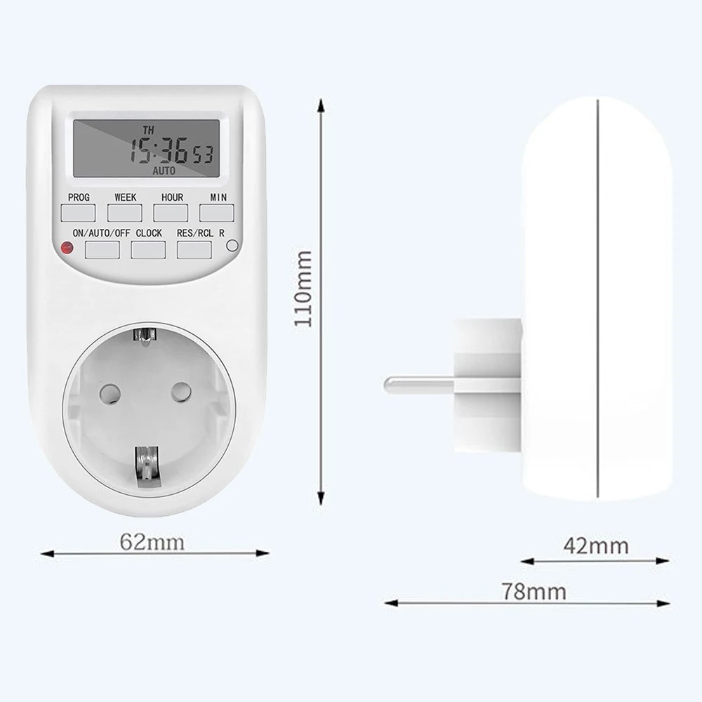 Ta biała wtyczka z timerem to idealny wybór do codziennego użytku. Oferuje wygodne automatyczne sterowanie urządzeniami, co pomaga oszczędzać czas i energię. Dzięki prostemu sterowaniu i kompaktowym wymiarom doskonale nadaje się do każdego domu. Wtyczka jest idealna dla urządzeń, które chcesz mieć pod kontrolą, niezależnie od tego, czy chodzi o oświetlenie, wentylatory czy inne urządzenia. Z tą wtyczką z timerem zawsze masz pod kontrolą, kiedy Twoje urządzenia się włączą lub wyłączą.