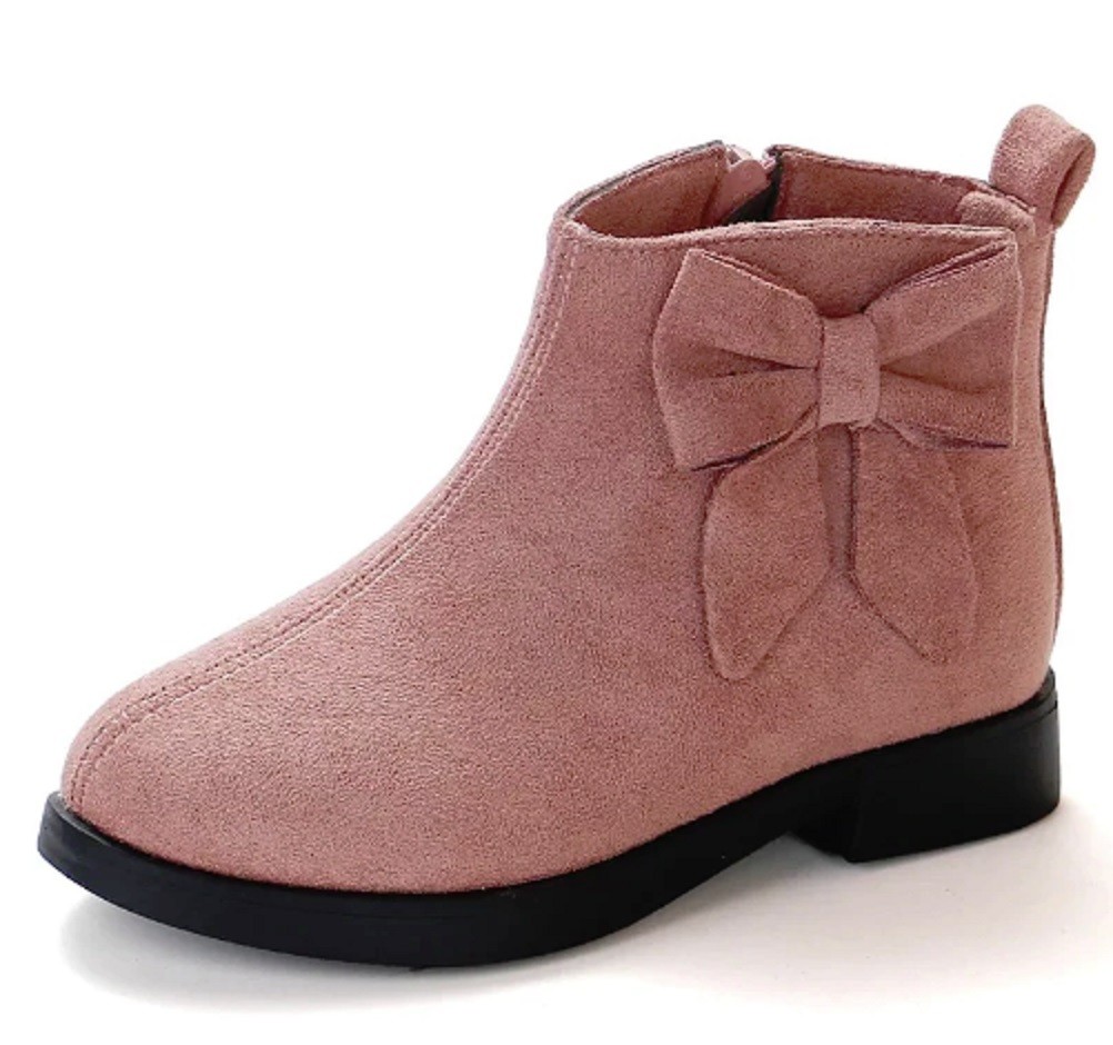 Dziewczęce buty do kostki ozdobione kokardką nadają się do spódnicy i spodni.