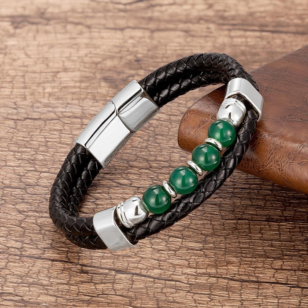 Materiał: metal jubilerski, sztuczna skóra, koraliki