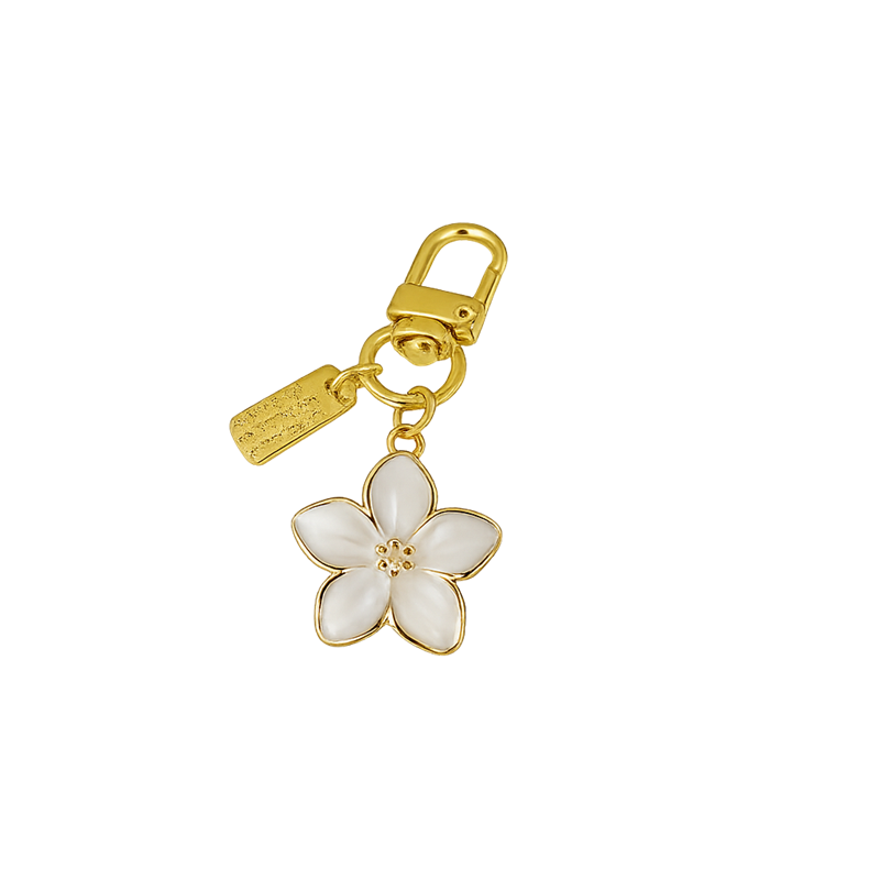 Stylowy brelok z motywem kwiatu i kopertówki jest eleganckim dodatkiem do codziennego noszenia. Wykonany jest z wysokiej jakości materiału cynkowego, który zapewnia wytrzymałość i długą żywotność. Połączenie delikatnego elementu kwiatowego i detalu kopertówki tworzy oryginalny design, który przyciąga wzrok od pierwszego spojrzenia. Dzięki uniwersalnemu wykonaniu pasuje do kluczy, torebki i plecaka.