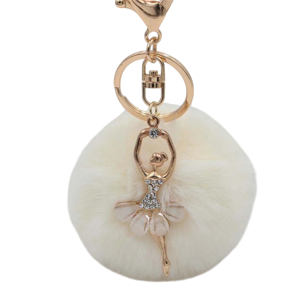 Brelok z pluszowym piłeczką i baletką 8 cm Stop metali Plusz Elegancki brelok do kluczy torebki plecaka modny dodatek