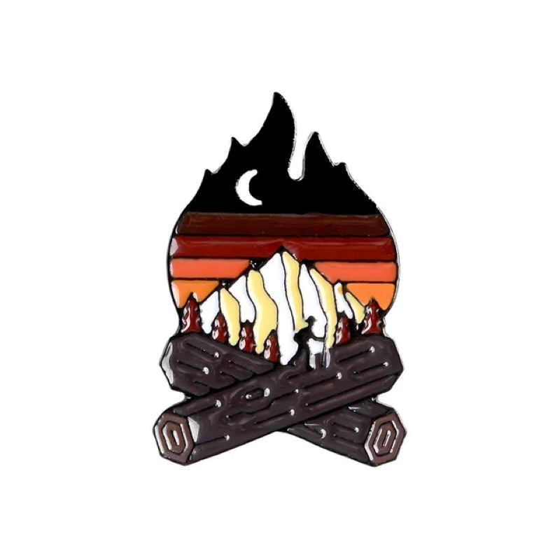 Broszka odznak pin ognisko góry noc motyw outdoorowe przygody metalowy wielokolorowy dodatek do plecaka odzieży turystyka kemping