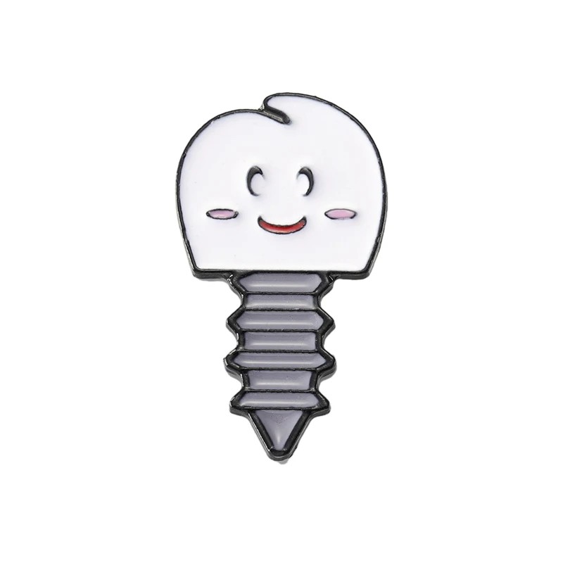 Broszka pin ząb z uśmiechem metalowy biały znaczek na odzież plecak torbę kapelusz uroczy dodatek codziennego noszenia