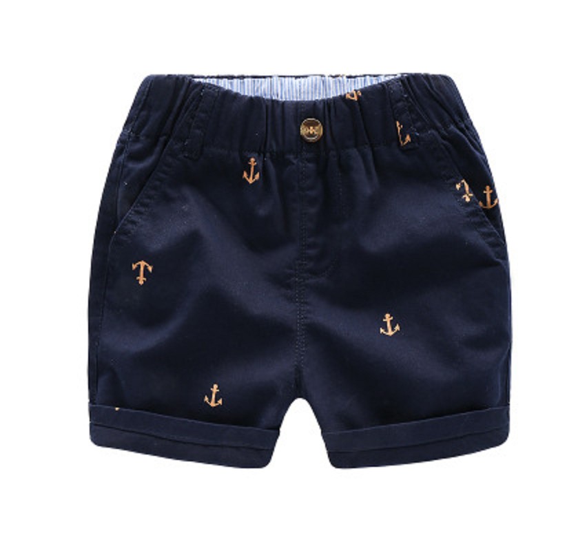 Piękne szorty chłopięce z nadrukiem z małymi kotwicami dla małych żeglarzy.