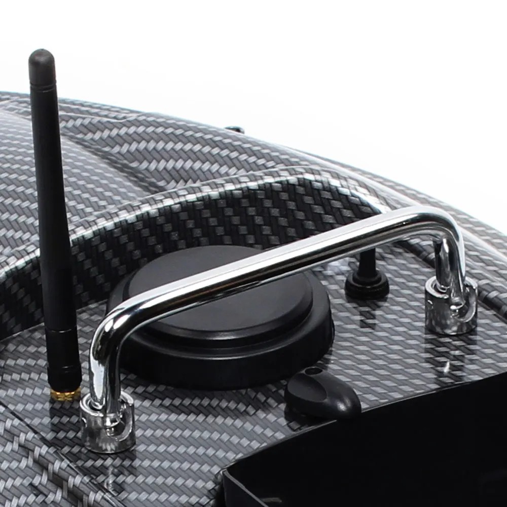 Kontrola odbywa się za pomocą pilota zasięgowego o zasięgu do 500 m, co zapewnia wystarczającą przestrzeń do precyzyjnego nęcenia nawet na rozległych akwenach wodnych. Łódź jest wyposażona w LED światła nocne, które zapewniają doskonałą widoczność podczas wędkowania o zmierzchu, w nocy lub w trudnych warunkach oświetleniowych.