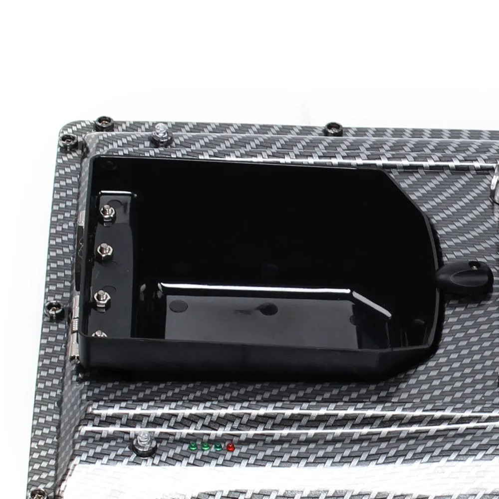 Przestrzenie ładunkowe umożliwiają bezpieczne przechowywanie przynęt i zestawów, a maksymalne obciążenie 1,5 kg jest idealne dla standardowych i bardziej zaawansowanych technik wędkarskich. Zamknięta konstrukcja chroni wewnętrzną elektronikę przed wodą i wilgocią, co przyczynia się do długiej żywotności urządzenia. Praktyczny uchwyt ułatwia przenoszenie i obsługę poza wodą.