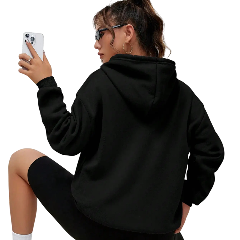 Stylowa damska bluza z miękkiego poliestru z kapturem, kieszeniami i napisem Los Angeles. Wygodna, nowoczesna i idealna do codziennego noszenia. Pełny opis