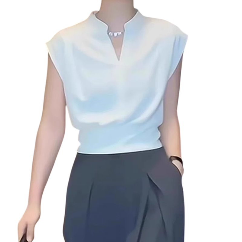 Strona główna Strona główna Odzież i akcesoria Odzież damska Bluzki damskie Bluzki damskie bez rękawów Damska bluzka z dekoltem w serek bez rękawów jednokolorowa lekka bluzka z wiskozy i poliestru odpowiednia do pracy i na lato