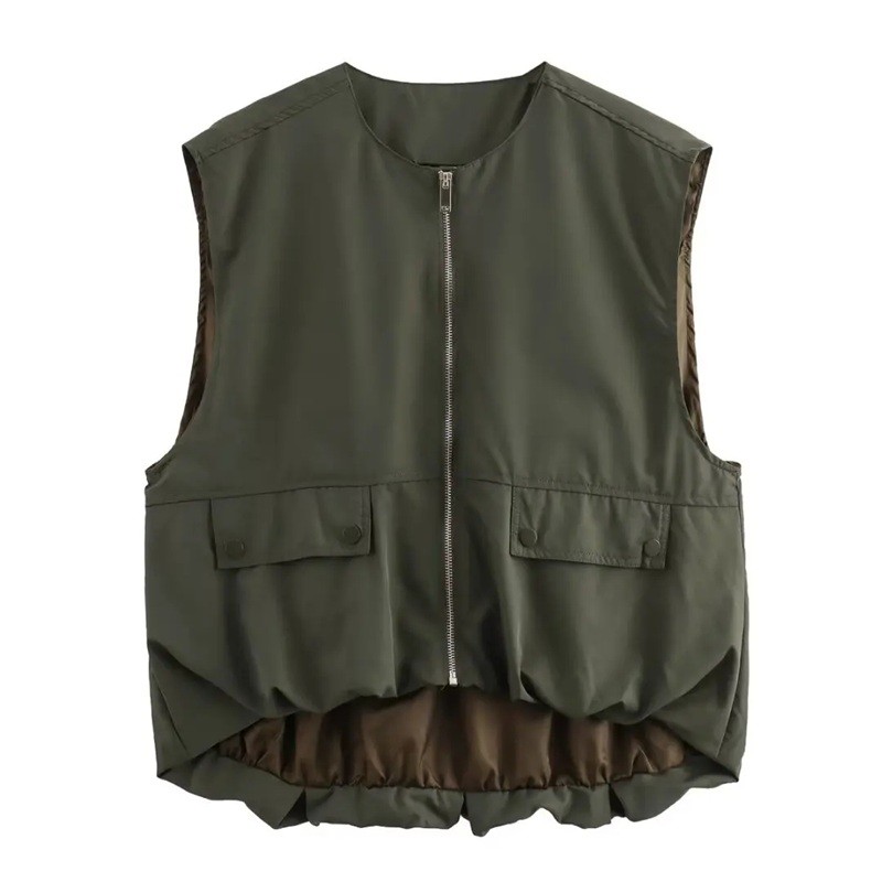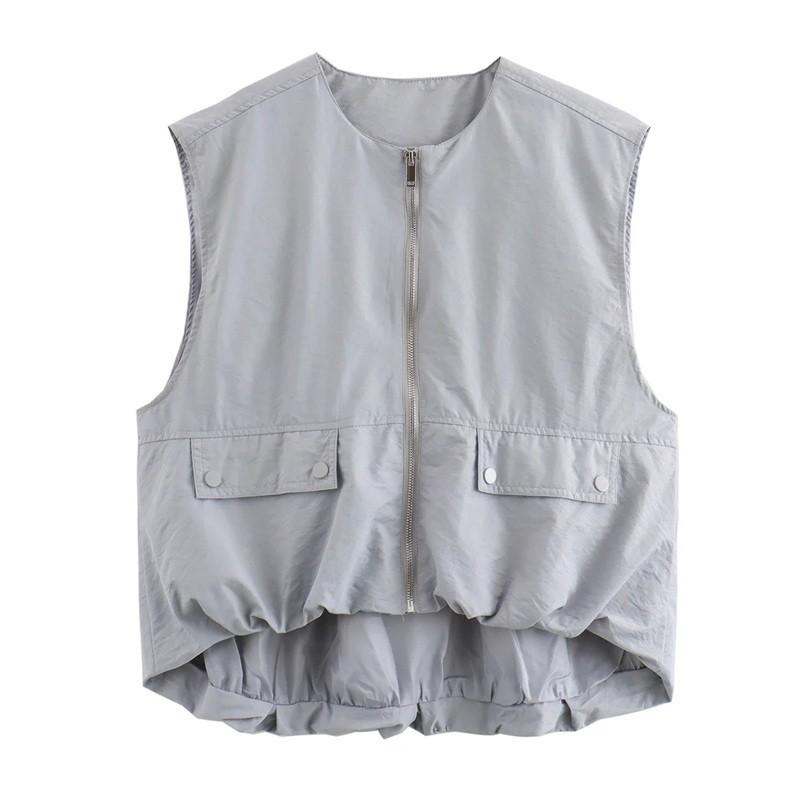 Praktyczna i stylowa damska kamizelka z kieszeniami i zamkiem. Lekki poliester, wygodny krój i elegancki jednokolorowy design do codziennych stylizacji. Pełny opis