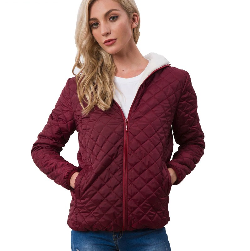 Kurtka damska ze stylowym wzorem odpowiednia na okres przejściowy.