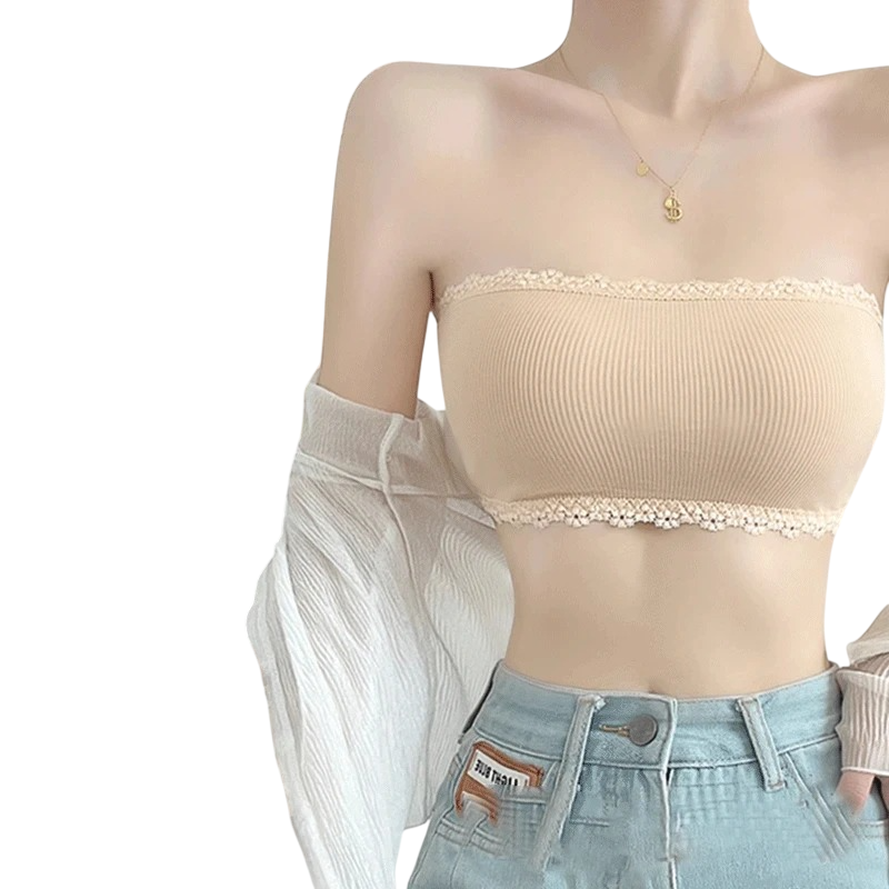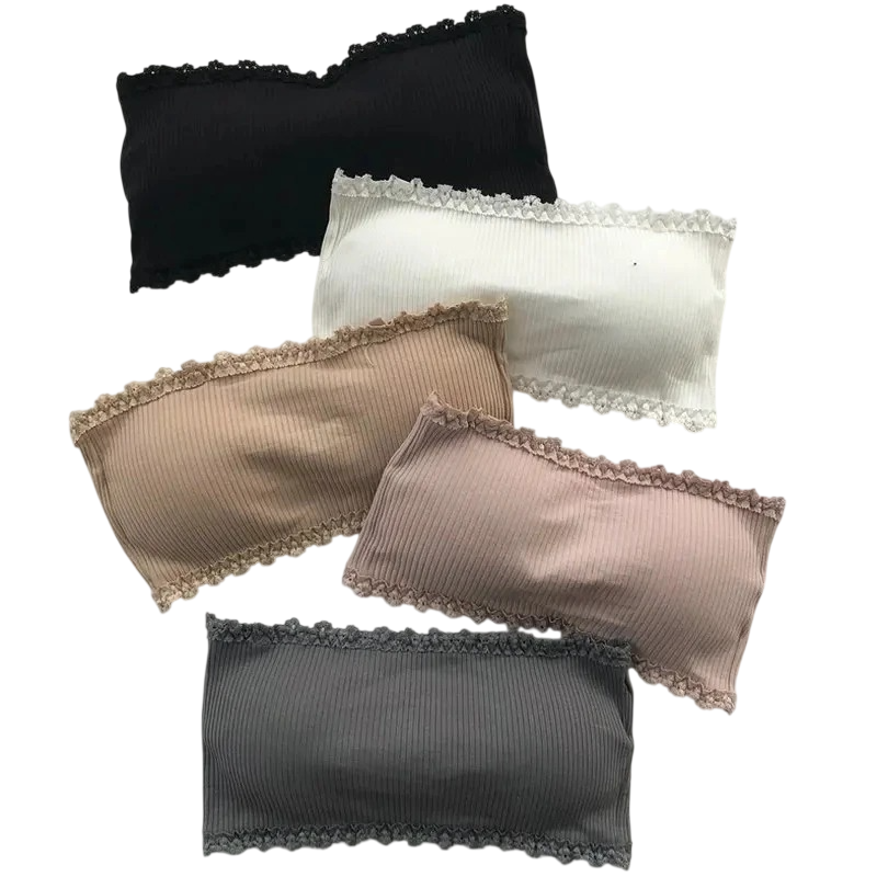 Damska podprsenka bandeau z koronkowym wykończeniem uniwersalny rozmiar nylon elastan do codziennego noszenia pod odzieżą