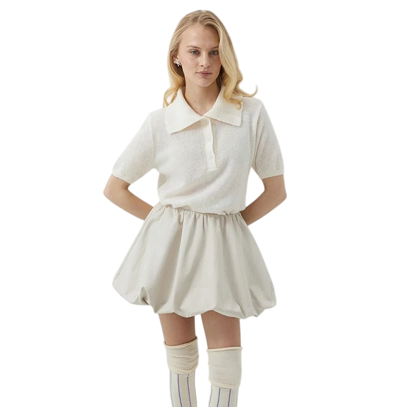 • Koszulka w kształcie V z kołnierzykiem i guzikami