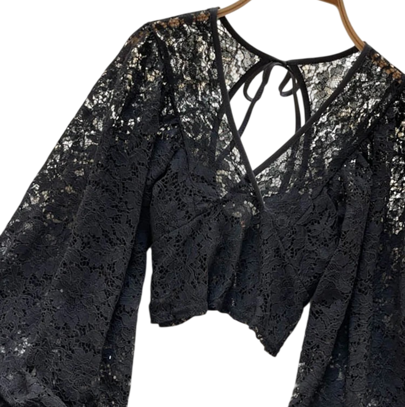 Damska półprzezroczysta bluzka Uniwersalny rozmiar Dekolt w kształcie V Długi rękaw Marszczenie Zawiązywanie na szyi