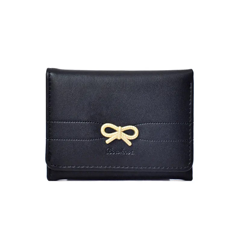 Damska portmonetka 11 x 8 x 2 cm z kokardką Pikowany powierzchni Miękka delikatna skóra syntetyczna Kompaktowe eleganckie wykonanie