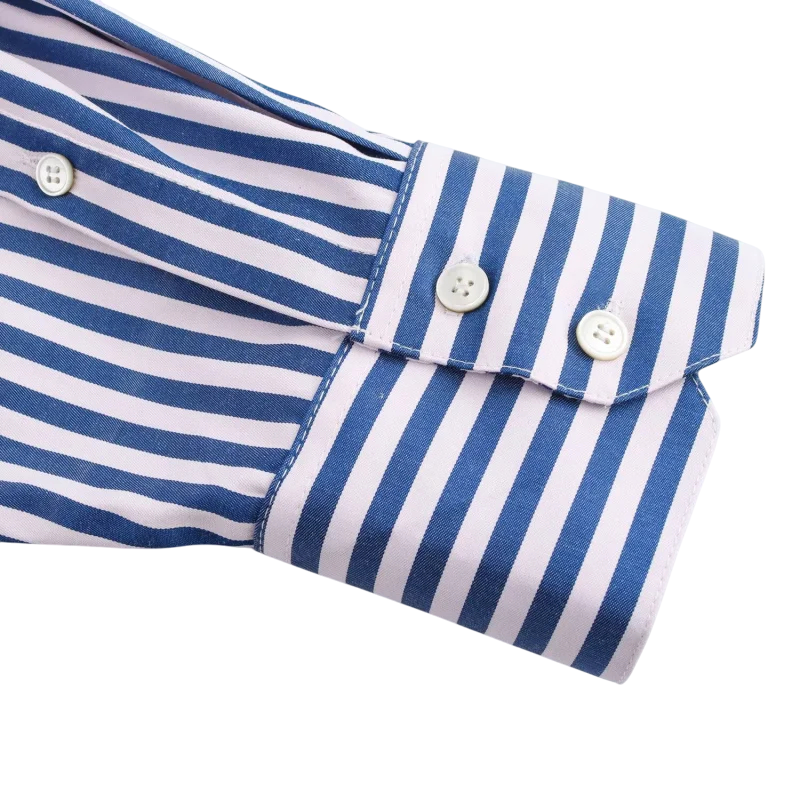 • Elegancka damska prążkowana koszula z długim rękawem i klasycznym kołnierzykiem