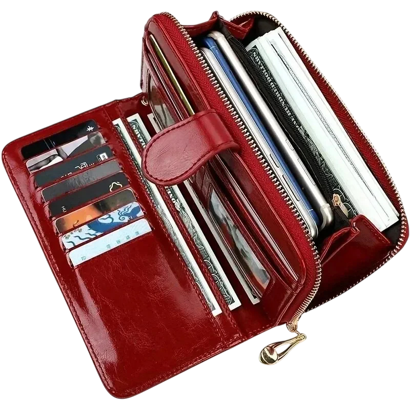 Damska rozkładana portmonetka na zamek 10 x 19,5 x 3,5 cm Duża pojemność Skóra syntetyczna olejowy wygląd Pętelka na rękę