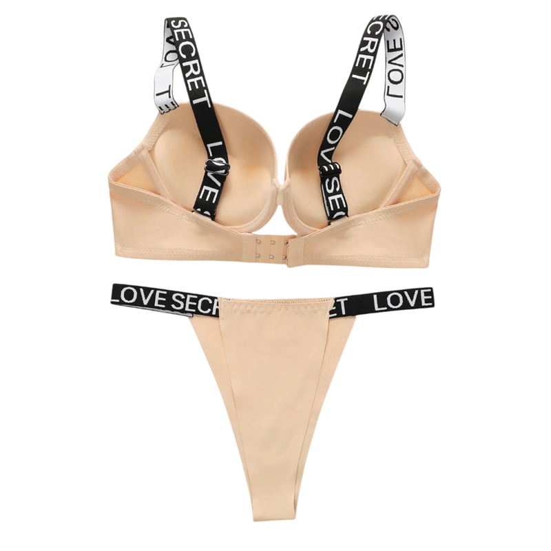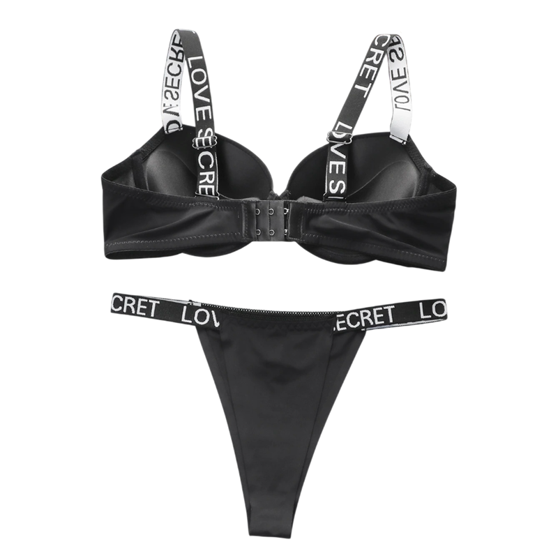 Damska spodnia souprawa z elastycznymi paskami z napisami biustonosz i majtki poliamid elastan do codziennego noszenia