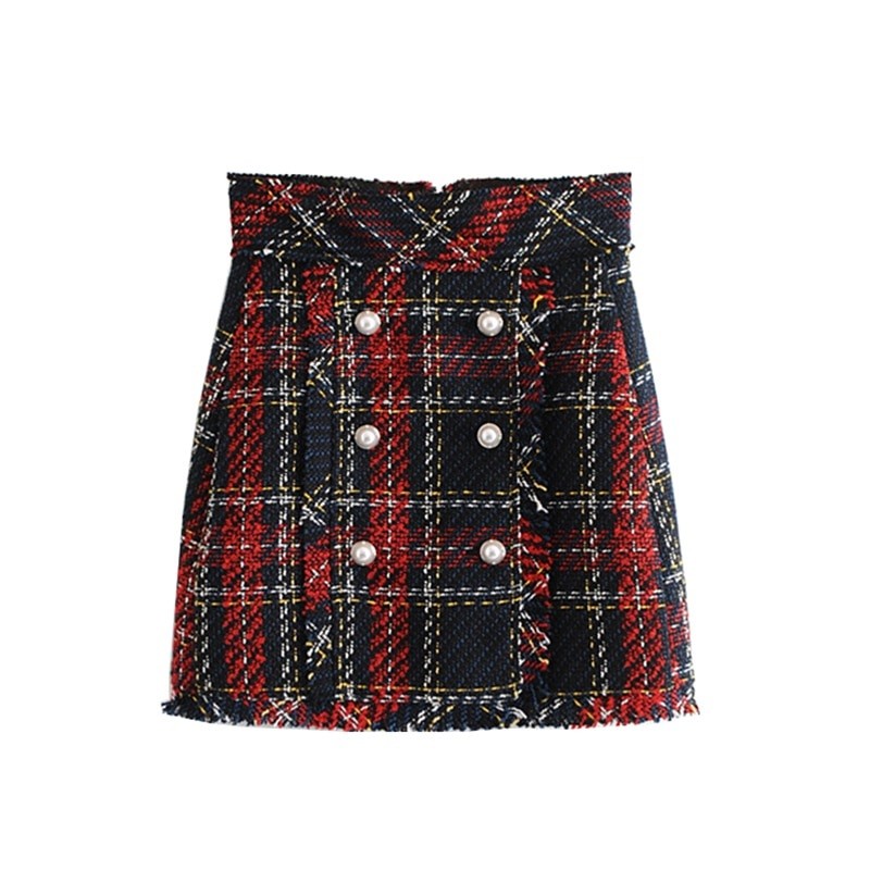 Damska spódnica w kratę z guzikami