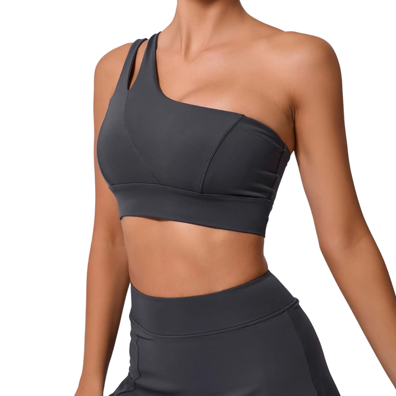 Strona główna Strona główna Odzież i akcesoria Odzież damska Bielizna damska Biustonosze damskie Biustonosze sportowe damskie Damska sportowa podbrzuszka na jedno ramię z asymetrycznym krojem nylon spandex do fitnessu jogi ćwiczeń i treningu