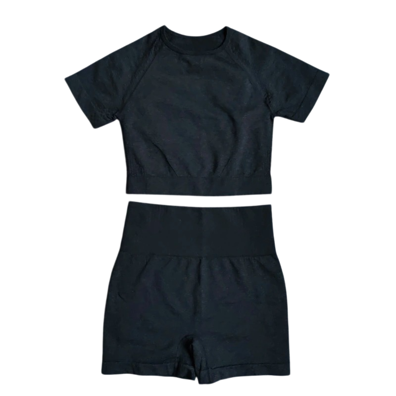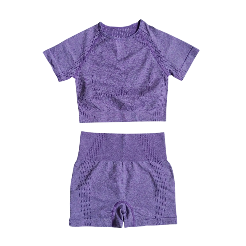 Damska sportowa souprawa Kraťasy i tričko z krótkim rękawem Jednobarwna fitness souprawa z nylonu, poliestru i spandexu