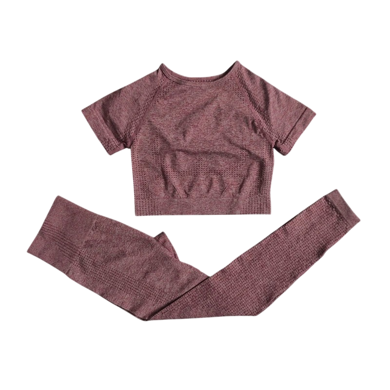 Damska sportowa souprawa Legginsy i koszulka z krótkim rękawem Jednokolorowa fitness souprawa z nylonu, poliestru i spandexu