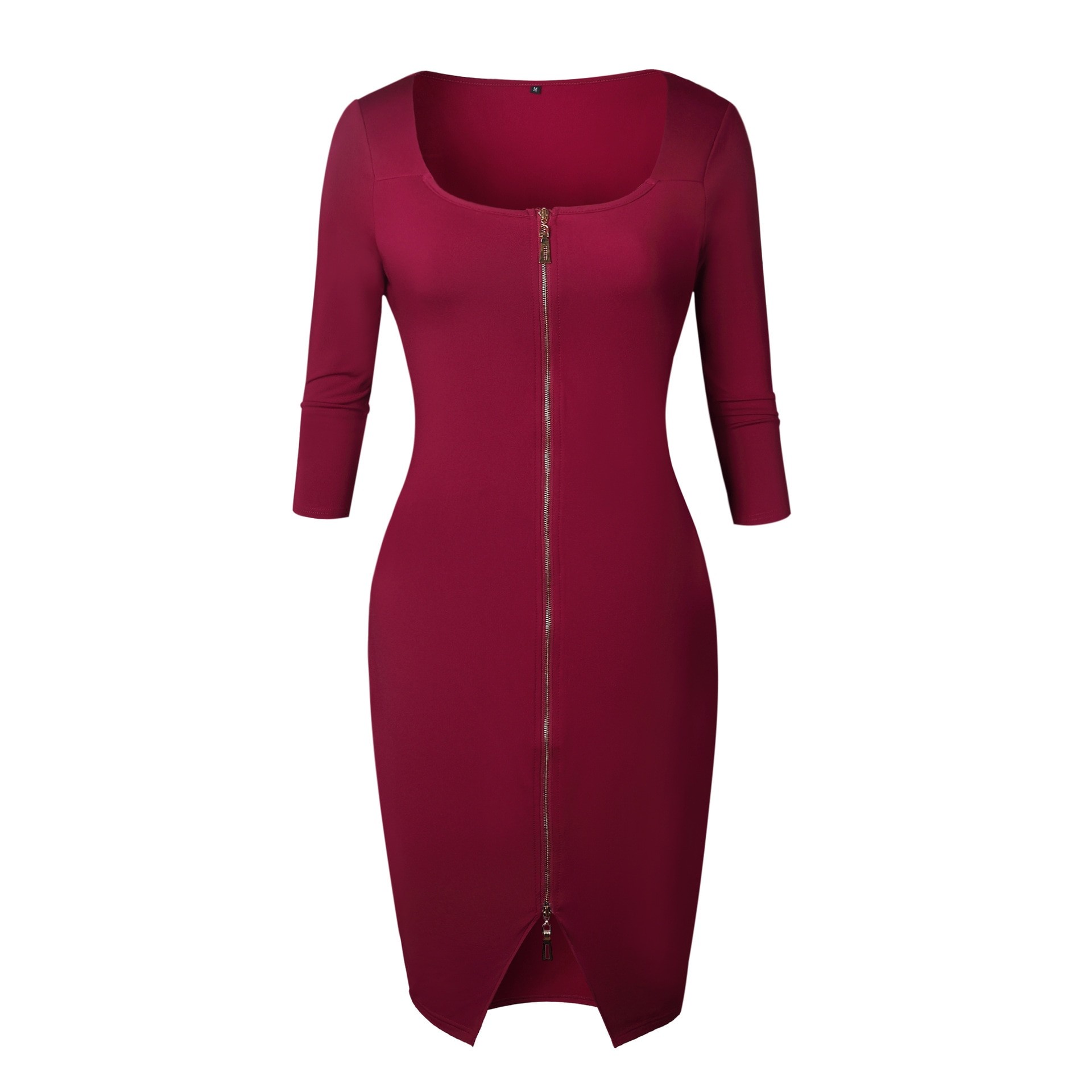 Seksowna damska sukienka ołówkowa z długimi rękawami.