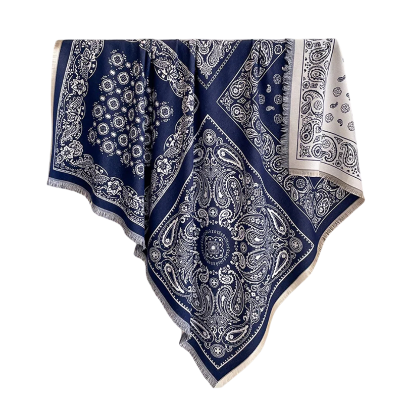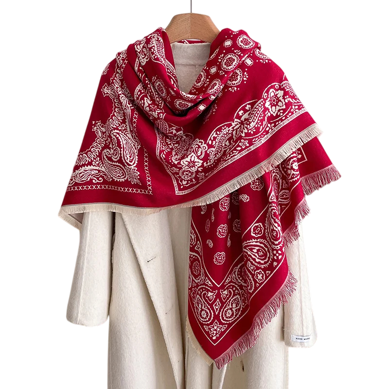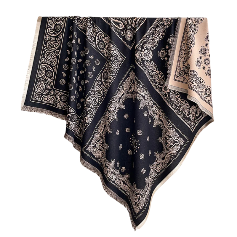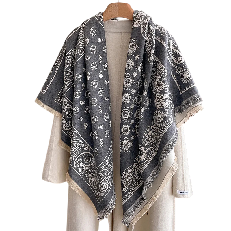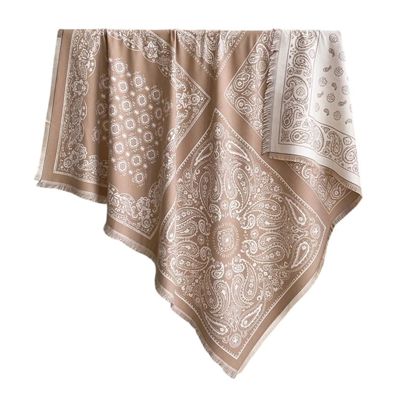 Damska szala 130 x 130 cm Poliestrowa kwadratowa szal z frędzlami Elegancki delikatny wzór Ciepły modny dodatek na jesień i zimę
