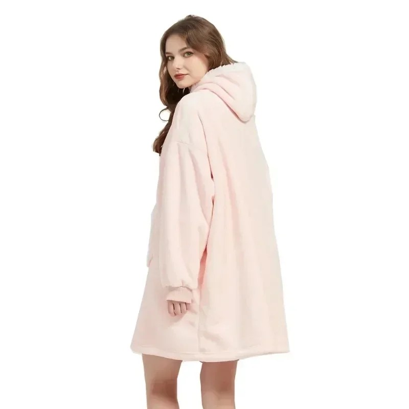 Strona główna Strona główna Odzież i akcesoria Odzież damska Bluzy damskie Damska zimowa bluza z kapturem Nadmiarowa ogrzewająca flanelowa narzuta z długimi rękawami i kieszeniami Wygodny miękki materiał z ciepłego poliestru